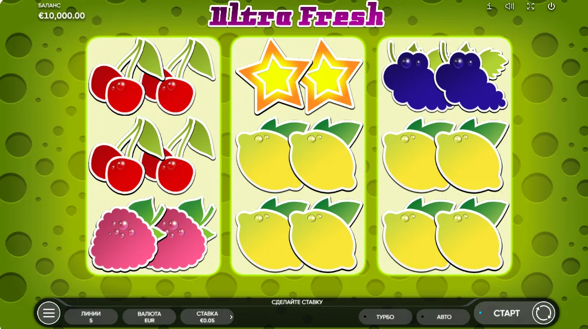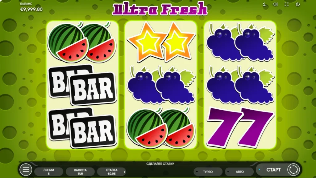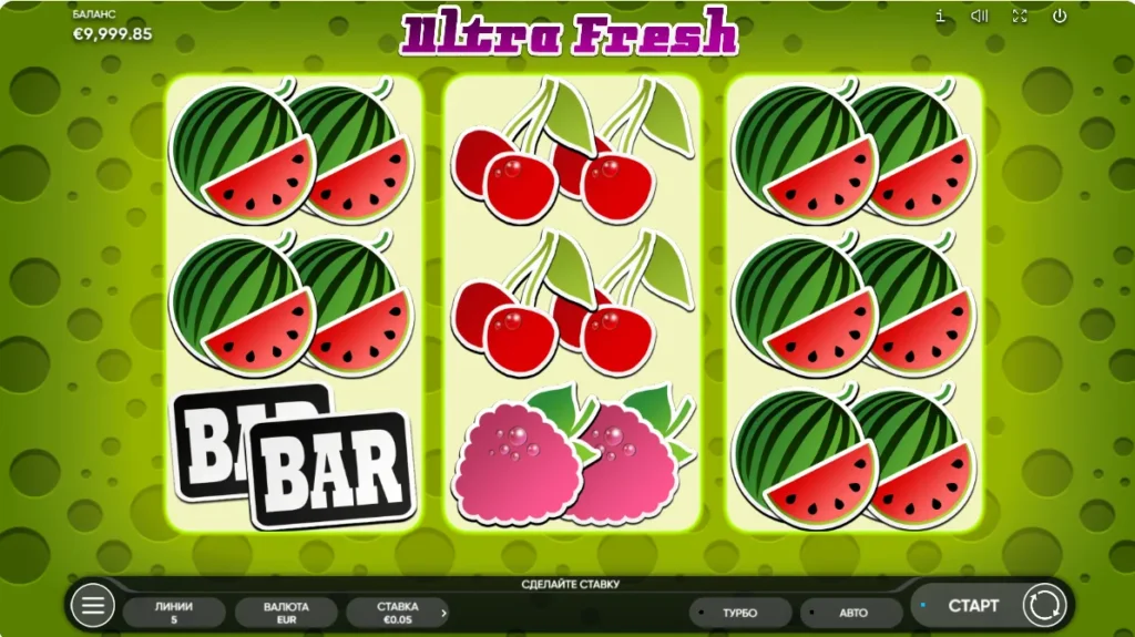 The Ultra Fresh slot stands out among competitors with its thoughtful architecture and balanced settings. Developers from Endorphina have created a game that simultaneously attracts beginners with its simplicity and retains experienced players with interesting mechanics.