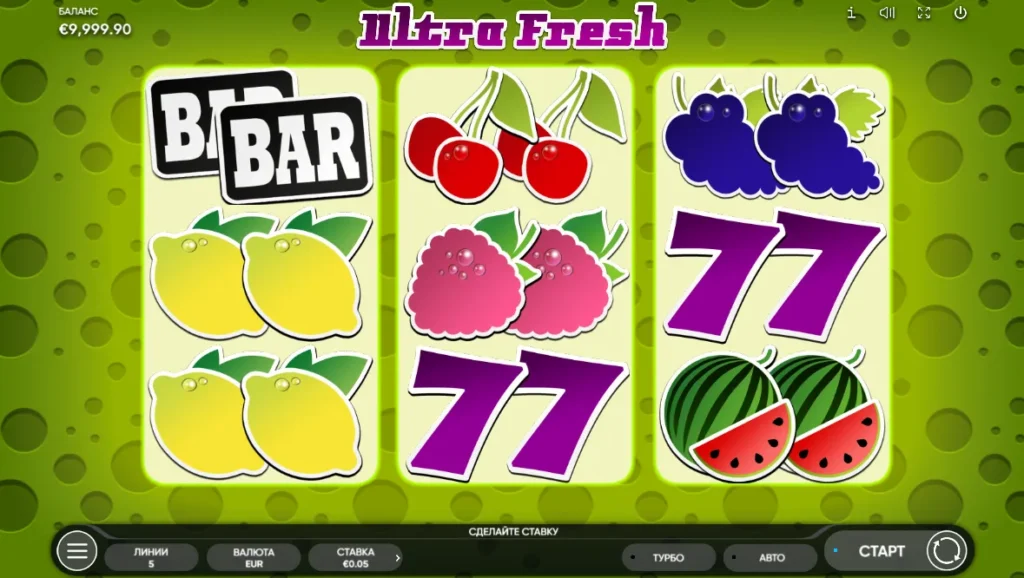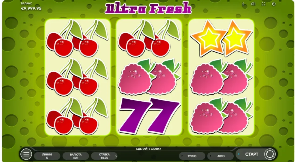 The Ultra Fresh slot stands out among competitors with its thoughtful architecture and balanced settings. Developers from Endorphina have created a game that simultaneously attracts beginners with its simplicity and retains experienced players with interesting mechanics.